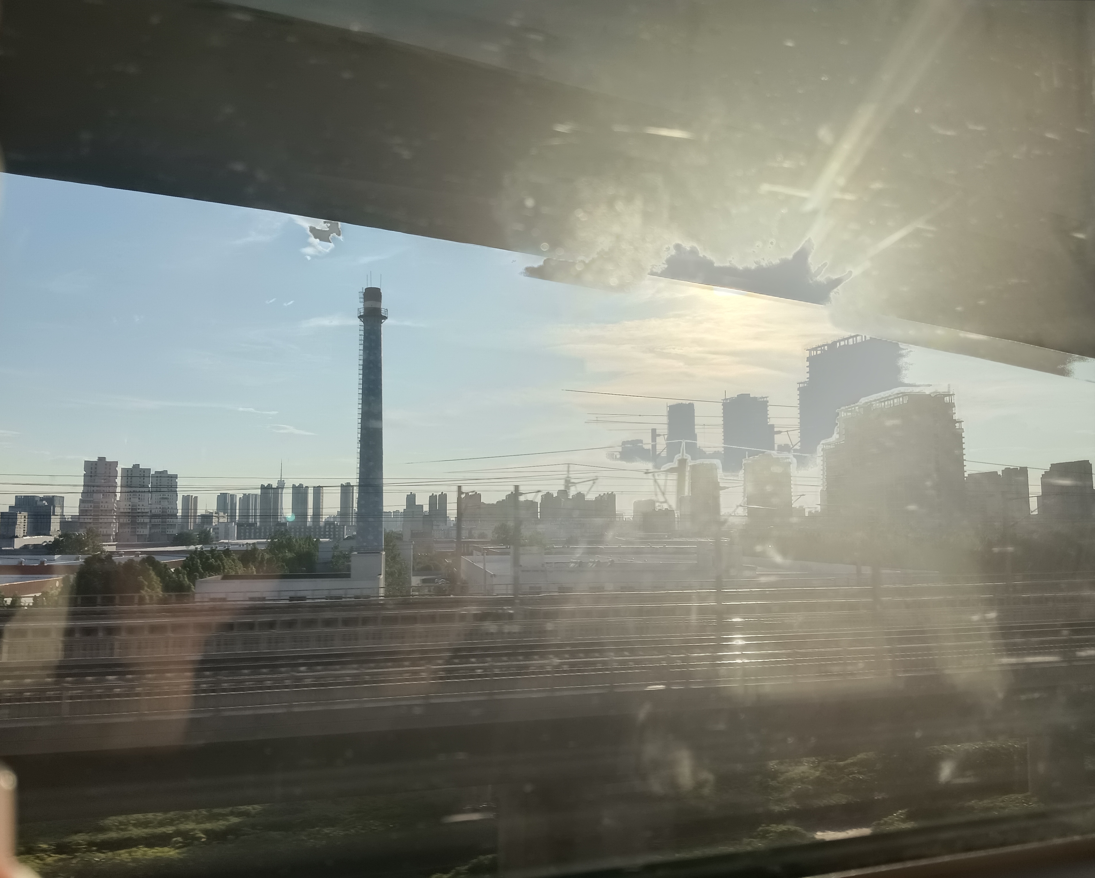 主题阐释:窗滤金芒,烟囱立城廓,新楼待起,轨线织就都市生长的韵脚。