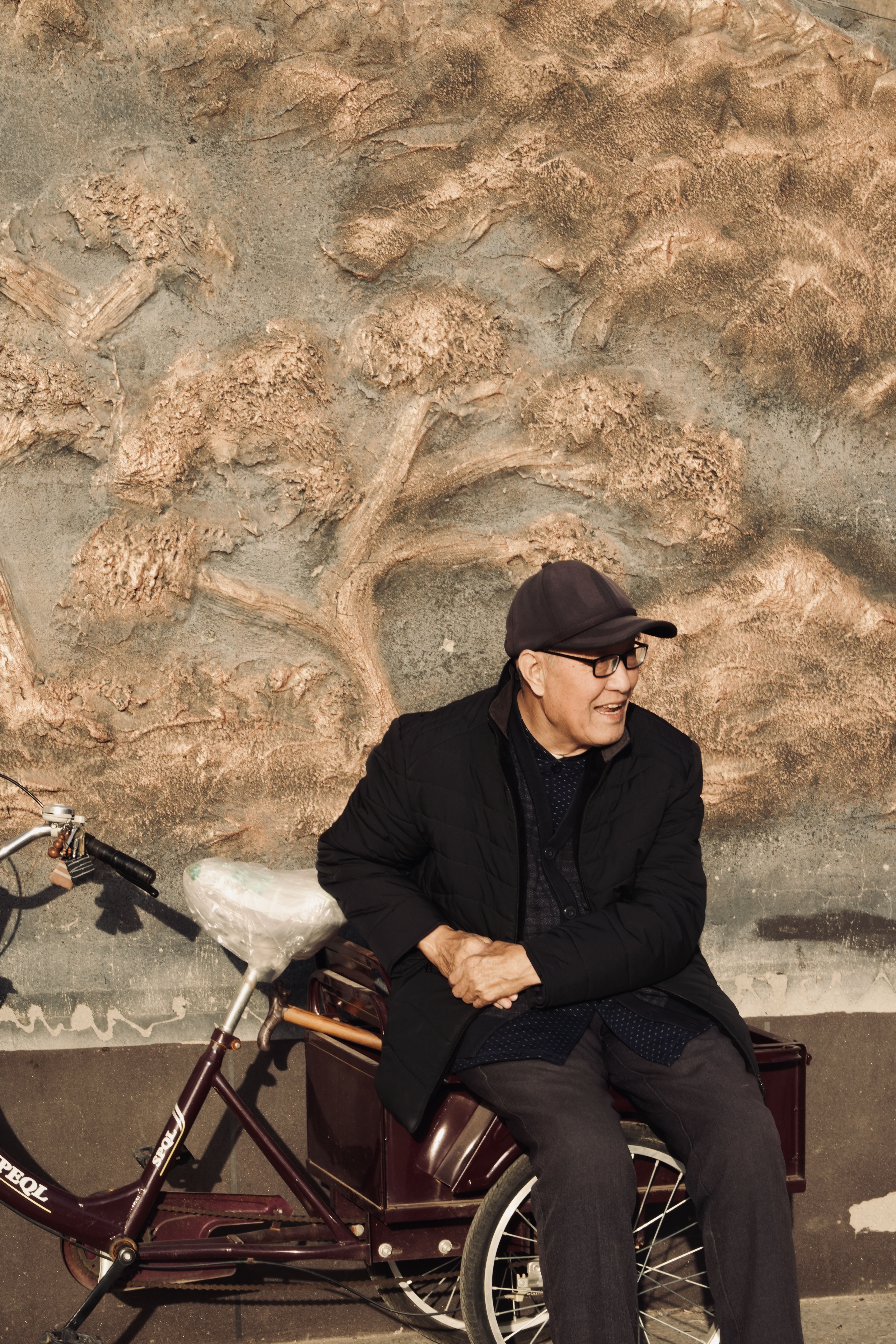 主题阐释:暖光勾勒笑颜,浮雕衬岁月从容,定格市井日常的温情诗意。