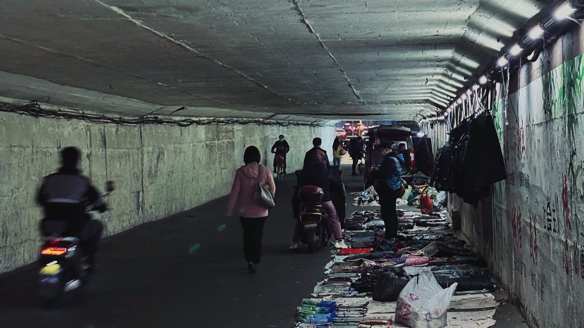 主题阐释:桥洞灯影里,旧衣摊铺展烟火,行人擦肩,藏着城市的细碎晨昏。以桥洞地摊为切口,藏城市边缘的烟火与平凡生计。