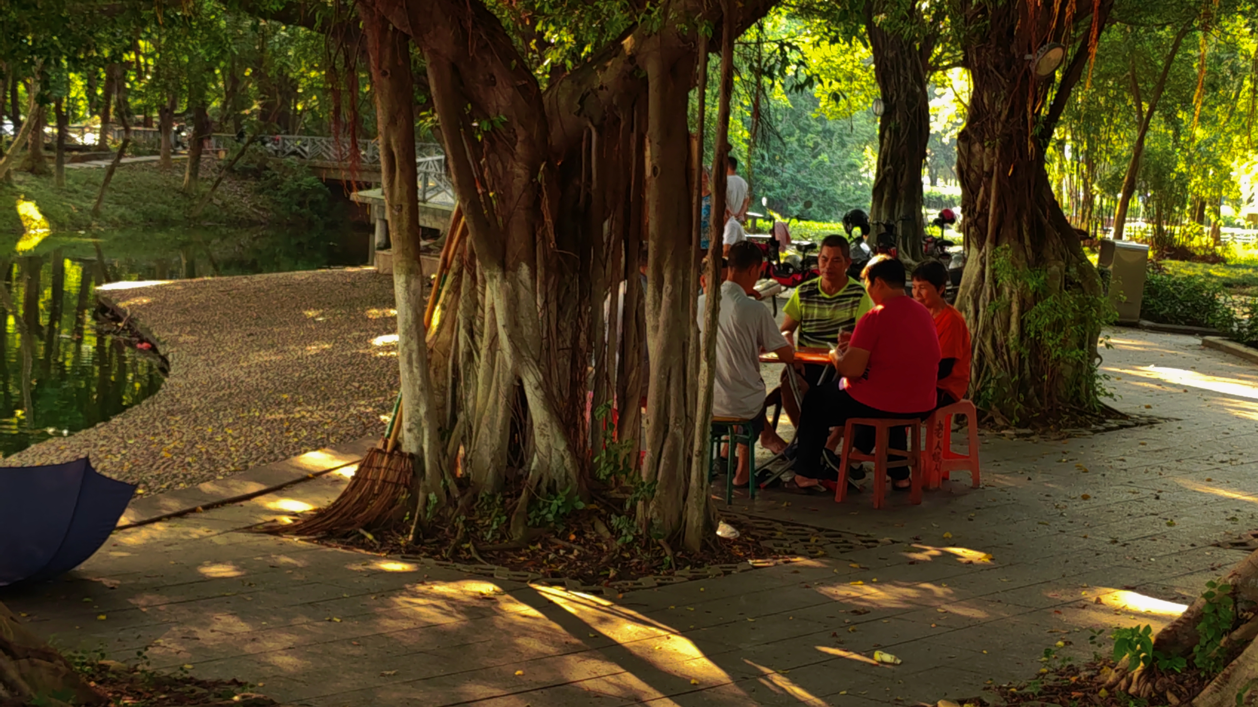 主题阐释:黄昏衔着岁月余晖,榕荫下老者闲坐,任时光缓淌,将半生风霜沉淀为眼底从容与此刻清宁。