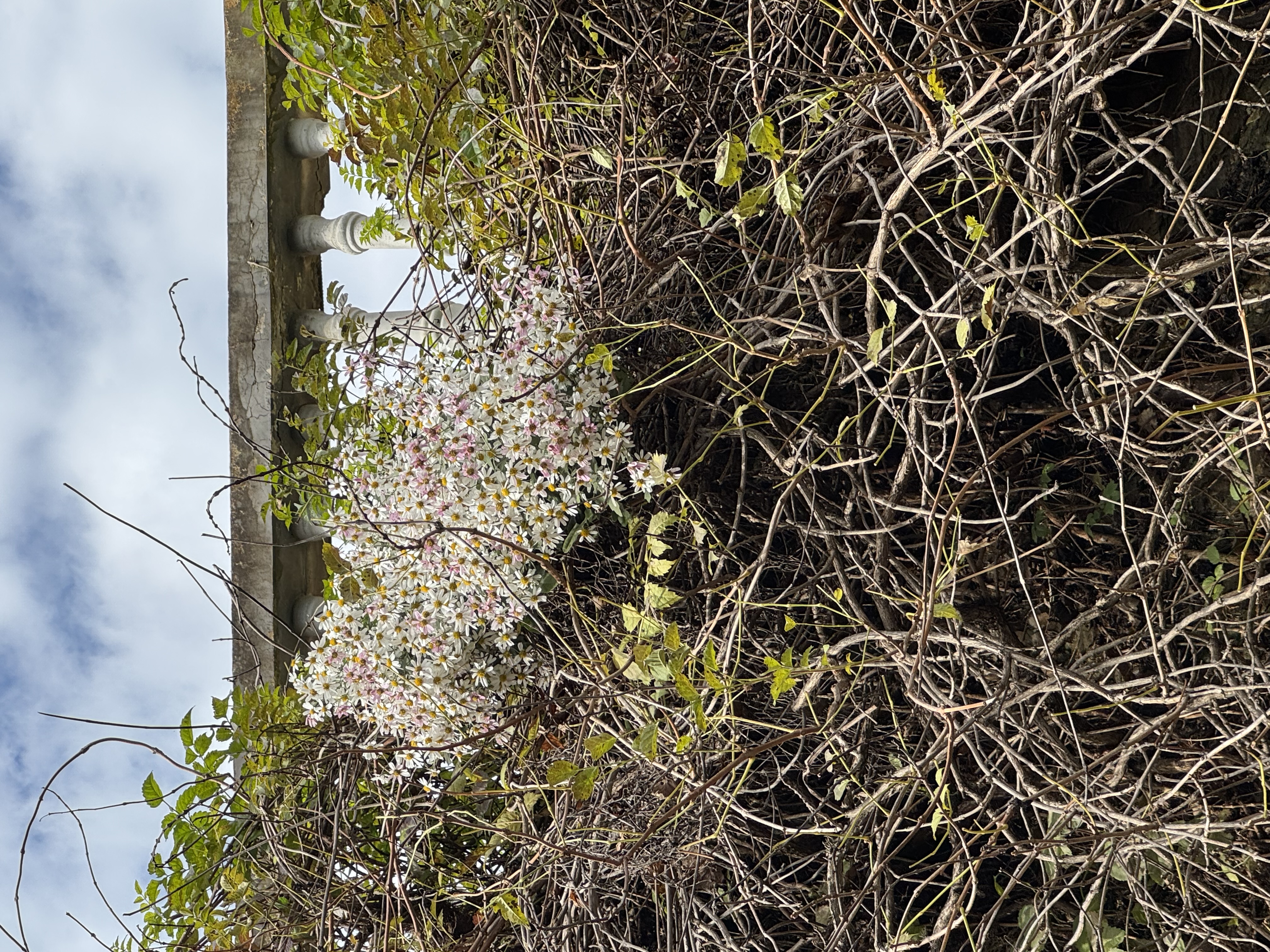 主题阐释:学校食堂下,一墙枯藤滋养着一簇小雏菊