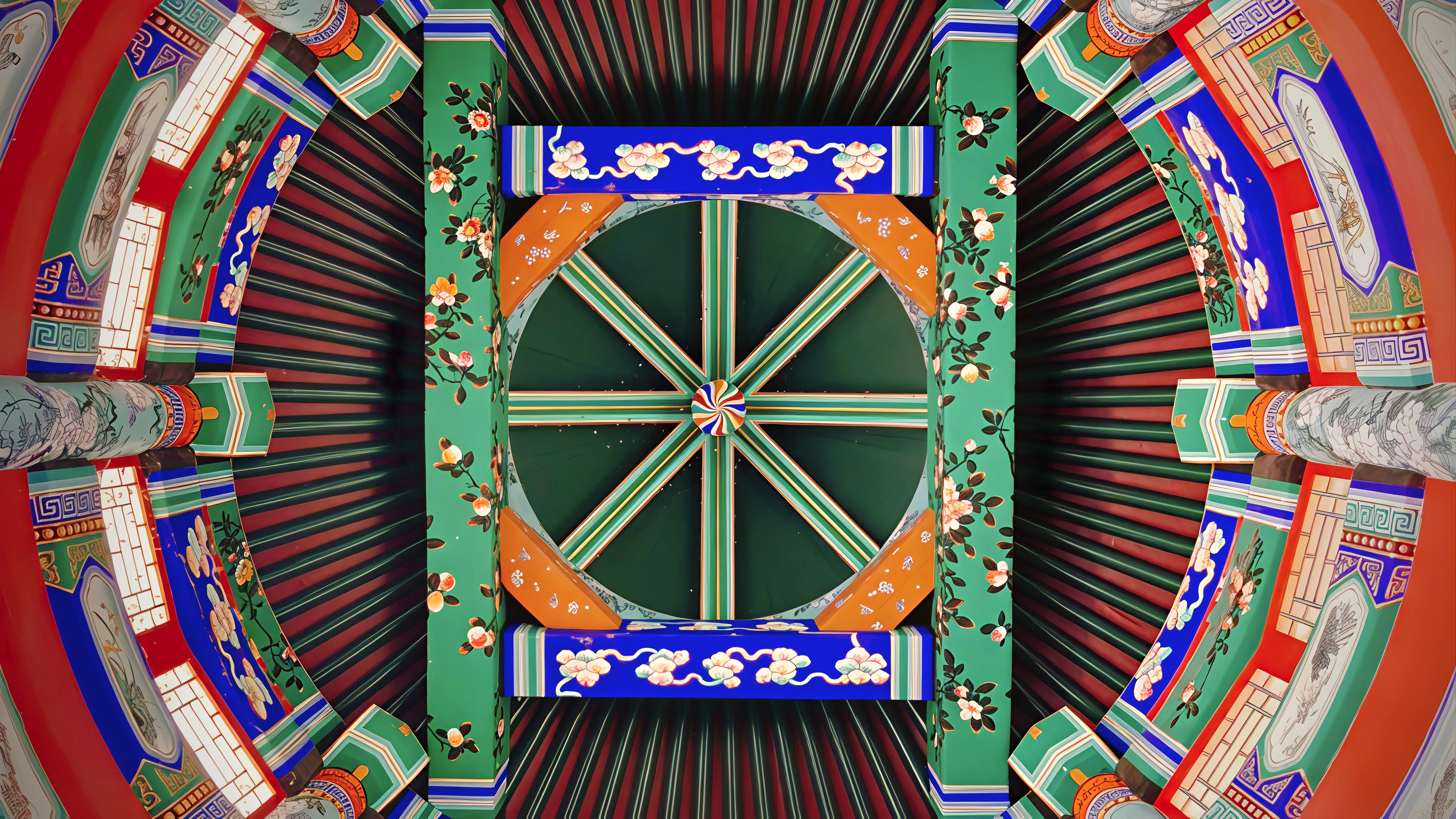主题阐释:自亭子底向上仰拍,可见其之机巧,对称设计妙不可言