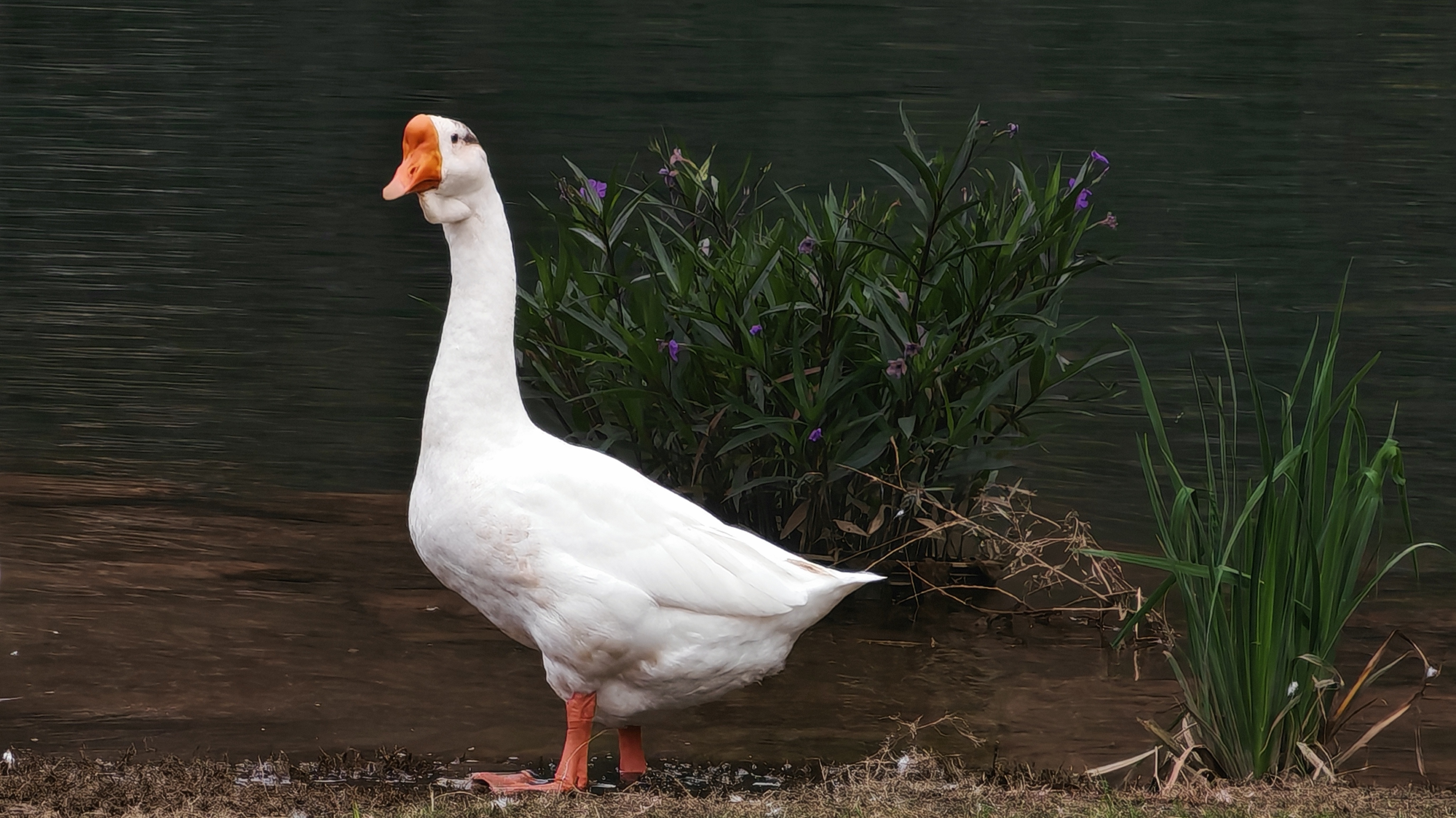 姓名:毛泓颖学校名称:江汉大学年级及专业:24级美术与书法主题阐释:作品聚焦溪畔一只白鹅的悠然姿态,其洁白羽衣与橙红喙掌形成鲜明视觉张力,昂首伫立间尽展自在神态。背景水色沉静,衬以紫花绿植的野逸生机,勾勒出一幅乡野溪岸的自然图景。它捕捉了田园角落的灵动瞬间,将家禽与自然环境的和谐共生具象化,传递出远离喧嚣的闲适野趣,让观者于鹅的悠然意态中,感知乡野一隅的清欢与生命的自在舒展。