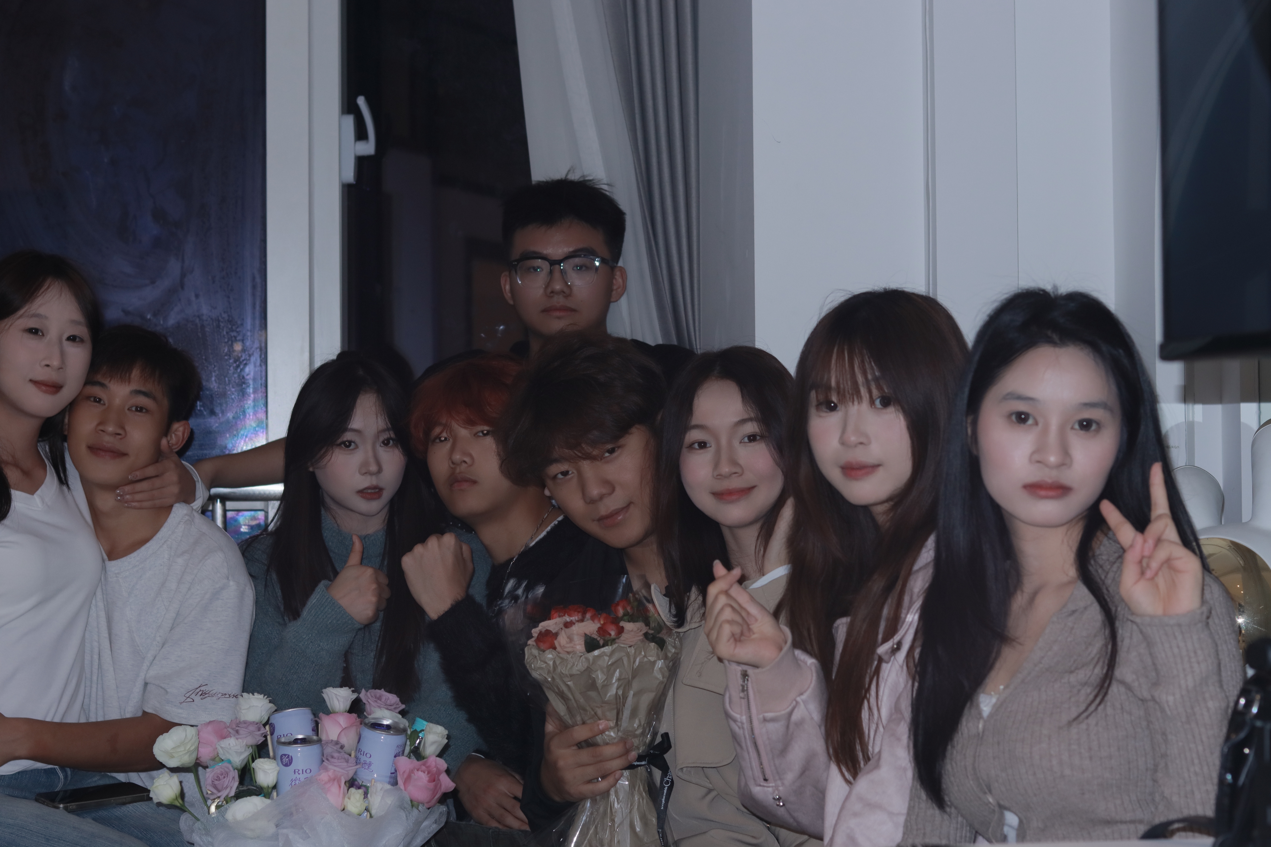 姓名:闻怡静学校名称:西南财经大学天府学院年级及专业:大二智慧健康养老服务与管理02班主题阐释:这帧群像,是青春与情谊的鲜活切片。明暗交织的场景里,每一张脸庞都带着独有的神态,或明朗或温柔,或俏皮或真挚。花束的芬芳、饮品的清甜,在空气中勾勒出欢聚的暖意,他们的姿态或亲昵或随性,将彼此间的羁绊与当下的欢愉,凝成了时光里最具温度的印记,是群像之美,更是一段共同记忆的生动注脚。