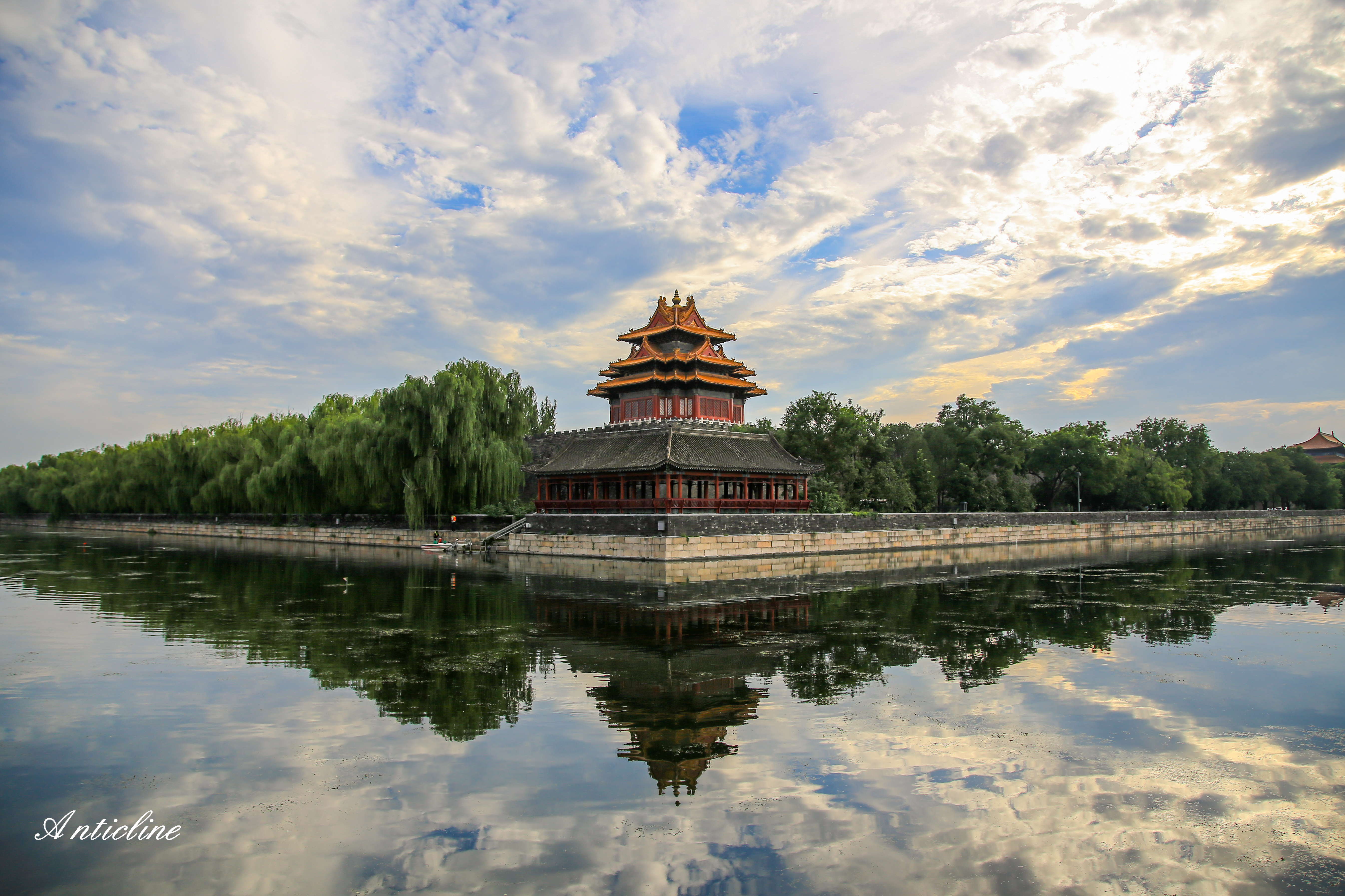 主题阐释:琉璃瓦的红在云影里轻轻摇晃,将岁月酿成一汪平静的水——倒影里的飞檐翘角,是时光对折后,给当下的温柔回望。