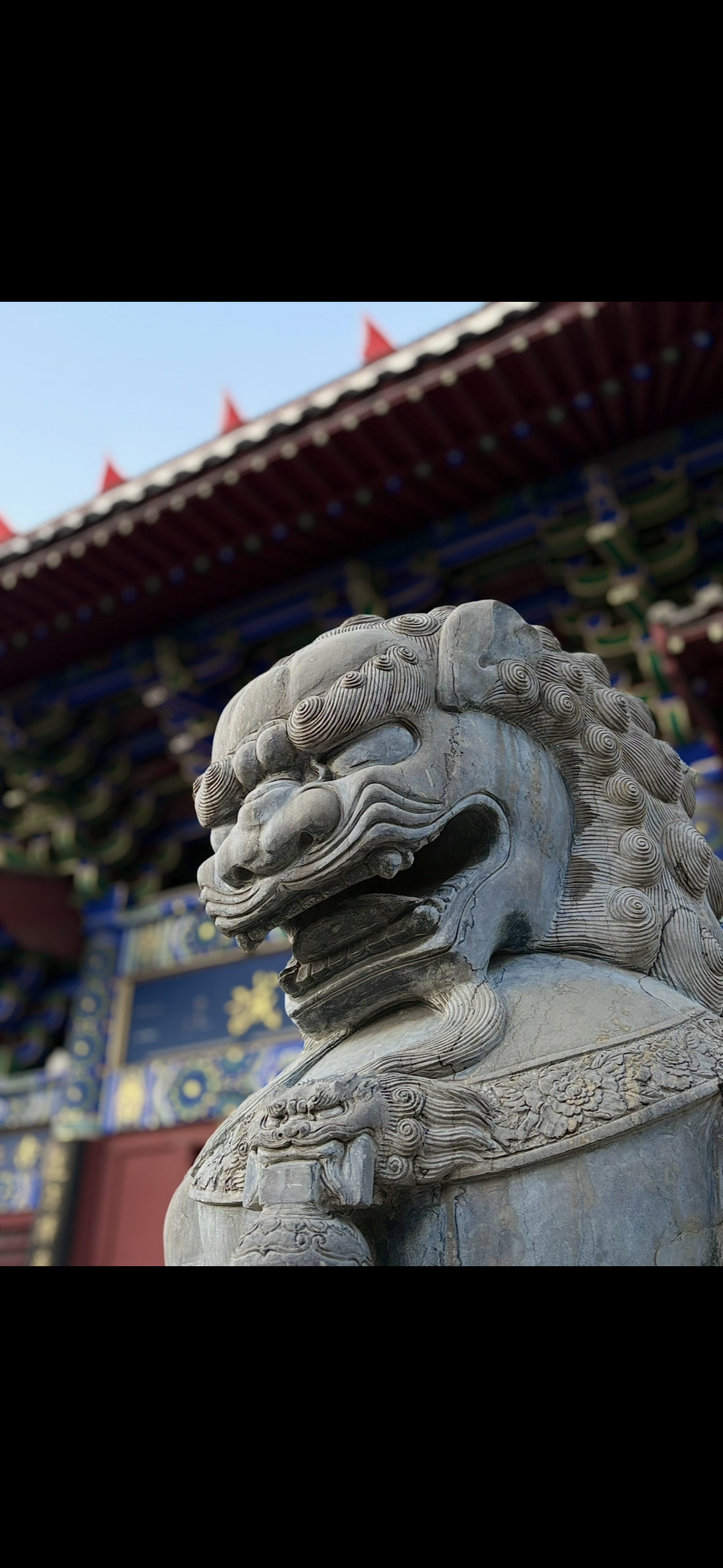 主题阐释:石狮守着古建的沧桑,红绸漾着当下的鲜活。