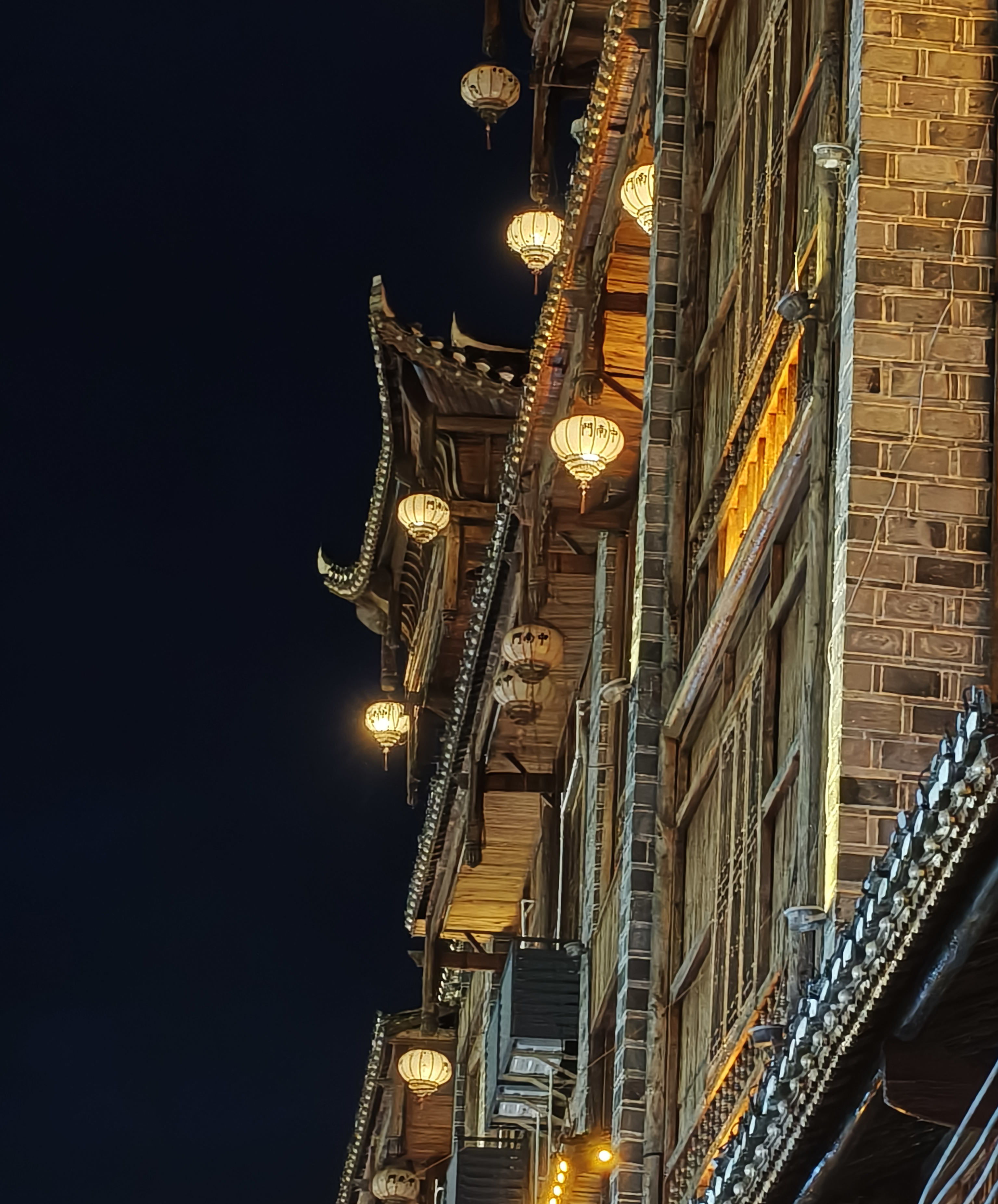 主题阐释:古朴的飞檐翘角在夜色的衬托下,轮廓更加鲜明,彰显着中式建筑的典雅韵味