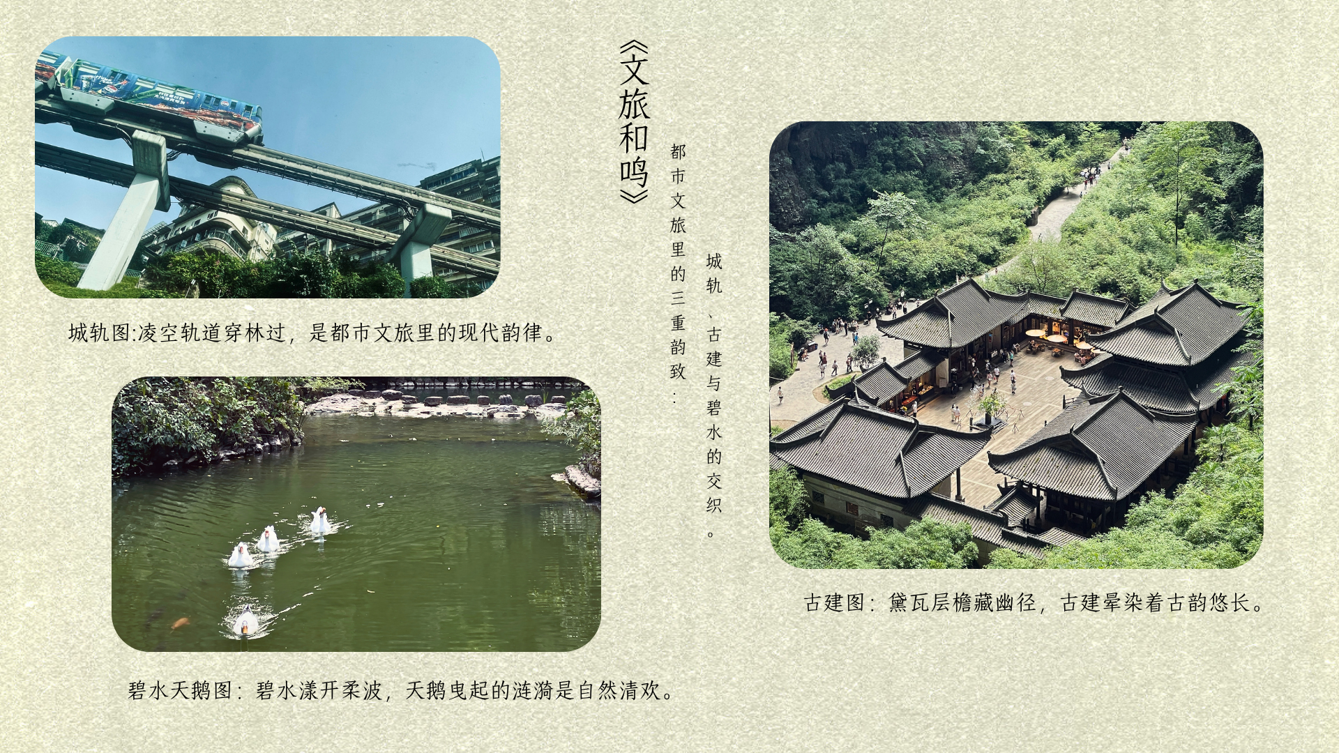 主题阐释:《文旅和鸣》:城轨穿林,古建映水,都市文旅藏古今韵致。